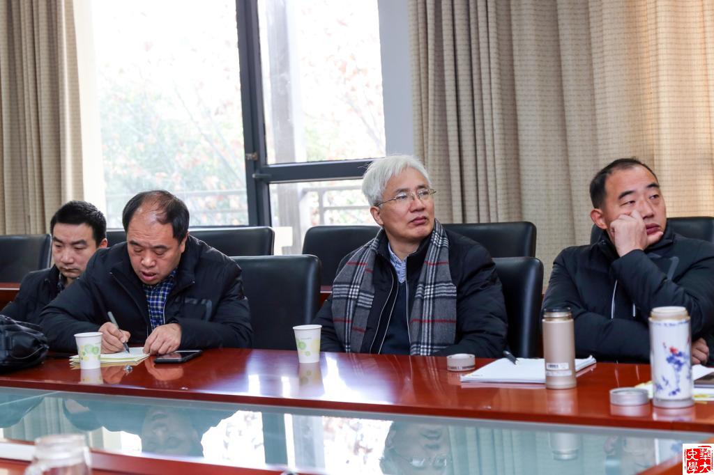 马敏教授结合历史学科的建设和发展,谈到了历史文化学院如何结合专业特点来深入学习贯彻学习研究十九大精神的几个切入点。他表示,一是可以对“新时代、新征程”进行历史解读,从历史视角来探讨中国特色社会主义进入新时代的发展依据,继续发挥和深化我院现代化史方向的研究优势,论证梳理中国近代以来现代化之路的特色和规律,提出具有中国特色的现代化理论;二是将“新经济”、“一带一路”概念与我院的优势研究方向经济史研究相结合,从经济转型、财政治理、中国工业化进程、亚洲商贸圈、国际商会等方面切入,为中央战略部署提供理论支持;三是从史学理论的角度出发,研究习近平的历史思维及其治国理政理论中的历史逻辑;四是结合2018年改革开放四十周年,组织力量进行改革开放四十年历史进程研究。马敏教授提出,我院应发挥研究团队的优势力量,结合十九大精神和社会现实,积极组织研究团队,提炼研究课题,争取为中央战略部署作出理论贡献。