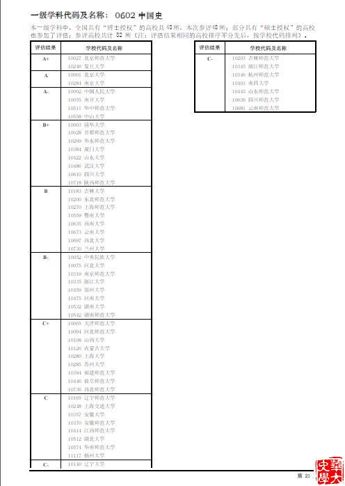 12月28日,教育部学位与研究生教育发展中心(简称学位中心)公布了全国第四轮学科评估结果。历史学科评估结果如下: