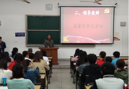 首先,由院党委书记寇富安做动员讲话。寇书记对所有参训学员表示了祝贺,以分享观看十九大召开的感受为基础,鼓励学员认真领会十九大精神,认真学习党的理论知识,端正入党动机,并时刻以党员的标准要求自己,争取早日加入党组织。随后,带队老师史亚楠老师强调了课堂的纪律、课程要求以及考核方式,希望学员们时刻严格要求自己。最后,班主任章重明老师表达了对学员们的期望,鼓励大家共同努力,顺利完成党课学习。